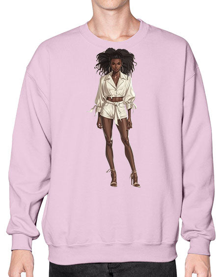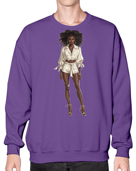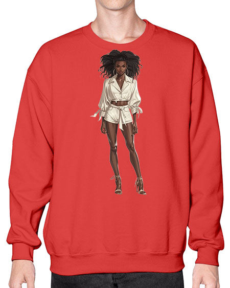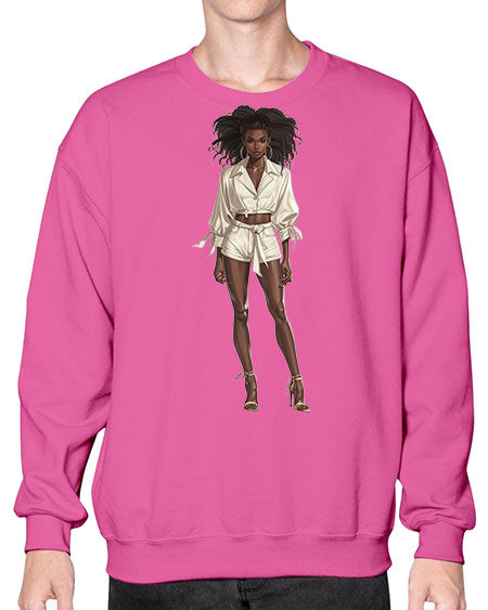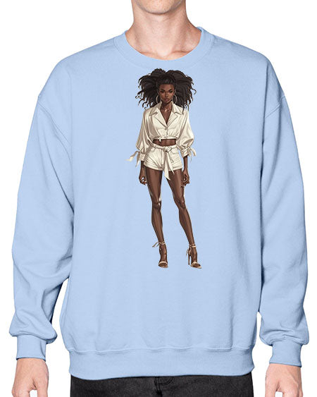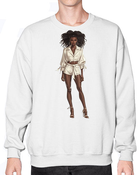 fashion girl in white 77# - fashion- Sweatshirt - Crew