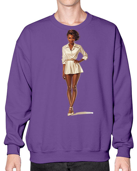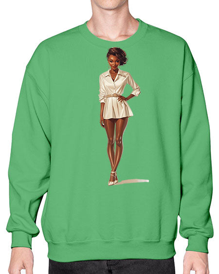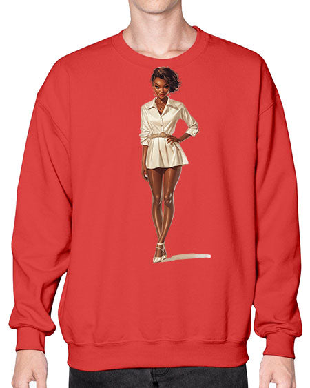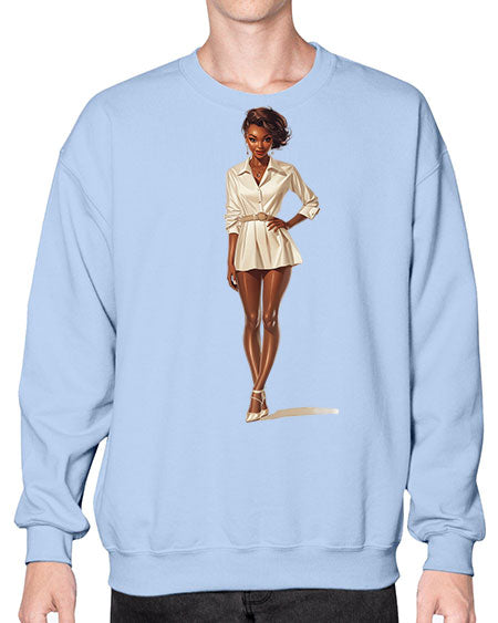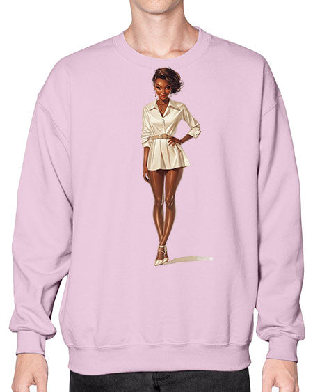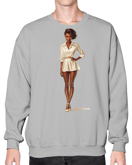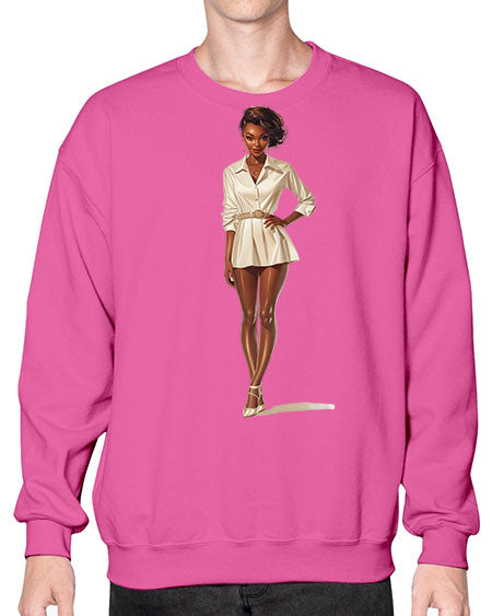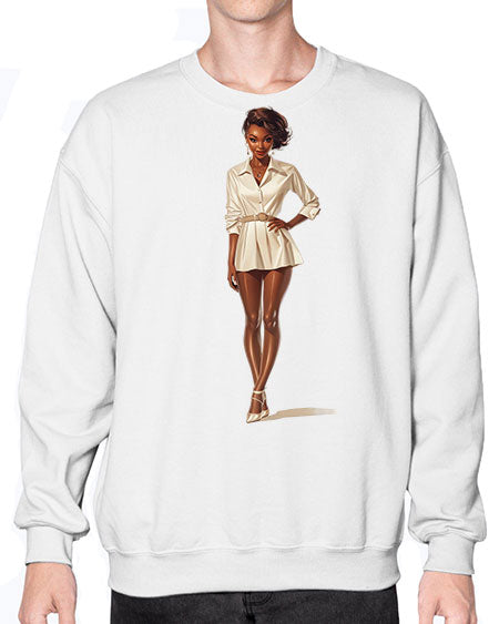 fashion girl in white 79# - fashion- Sweatshirt - Crew