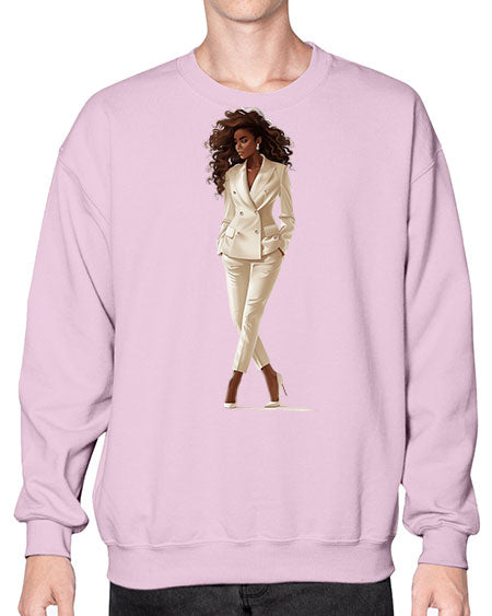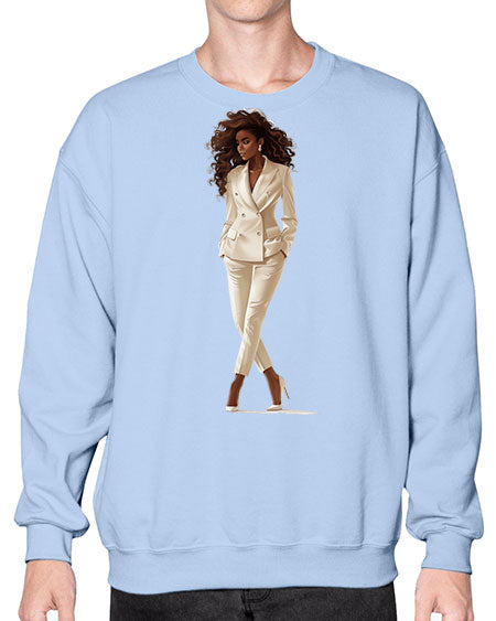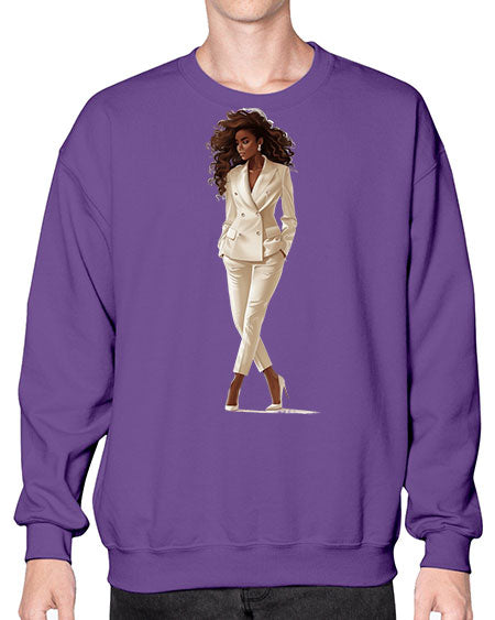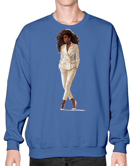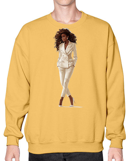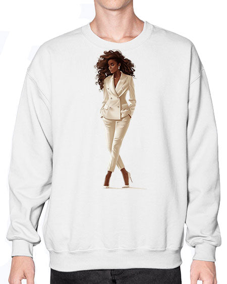 fashion girl in white 81# - fashion- Sweatshirt - Crew