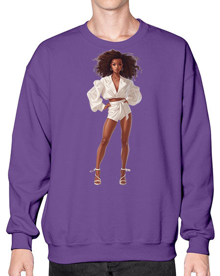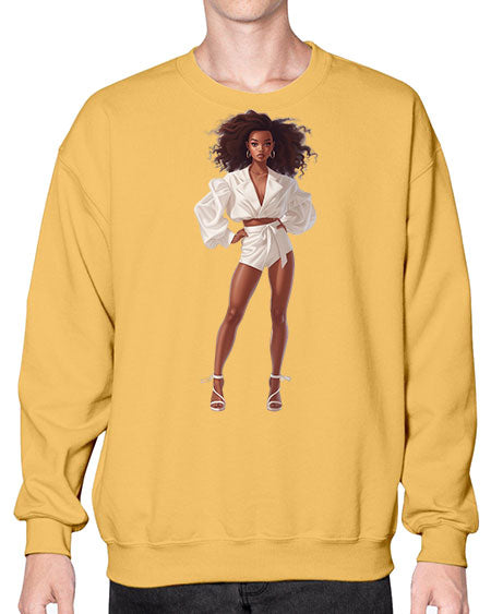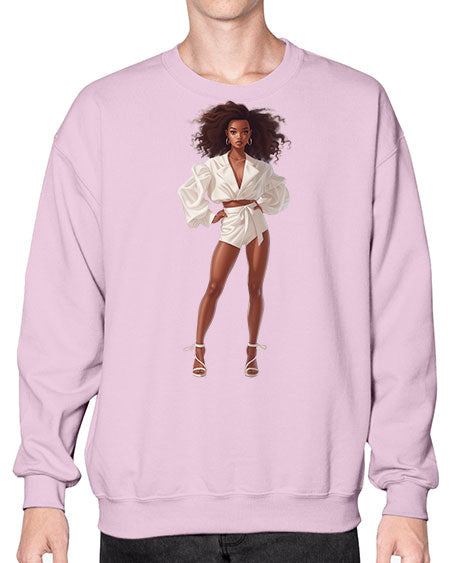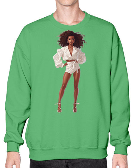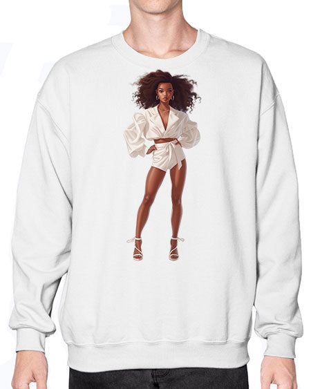 fashion girl in white 82# - fashion- Sweatshirt - Crew