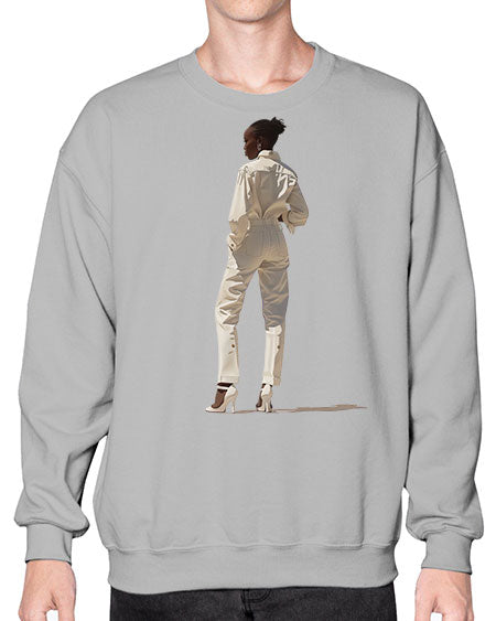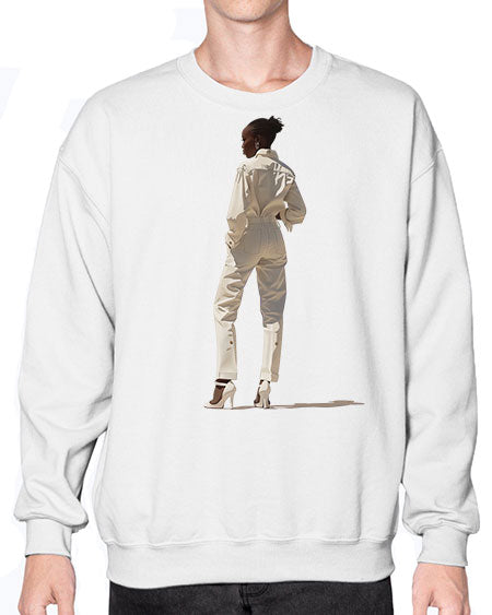 fashion girl in white 83# - fashion- Sweatshirt - Crew