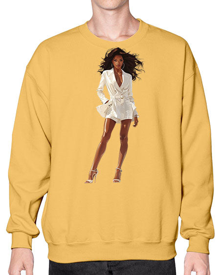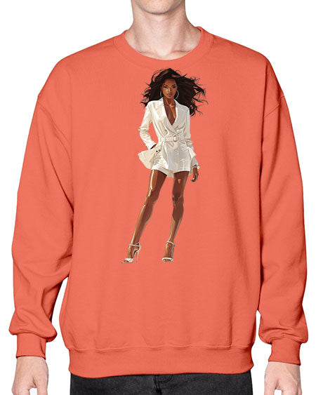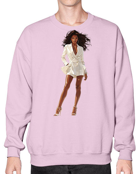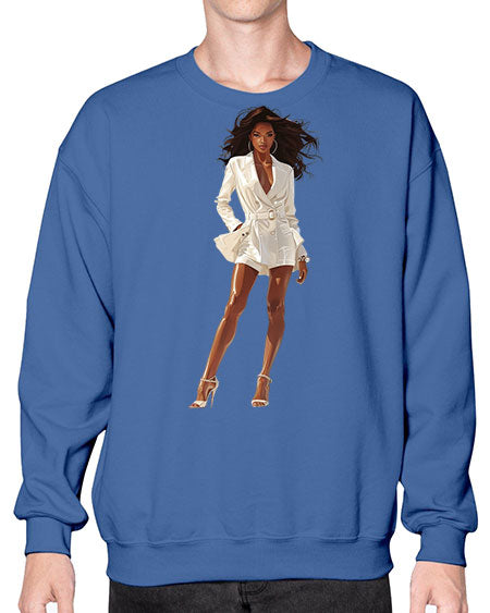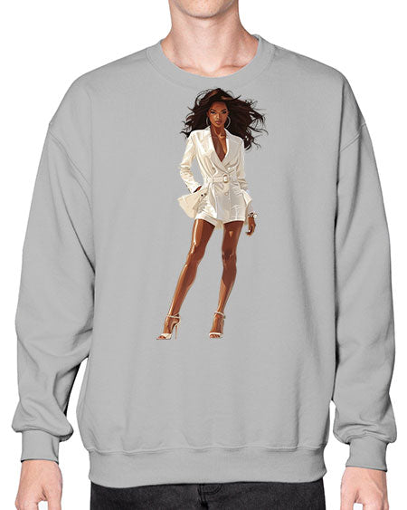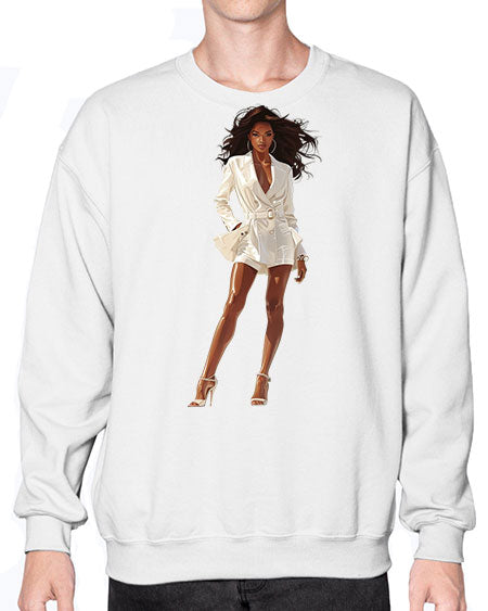 fashion girl in white 86# - fashion- Sweatshirt - Crew