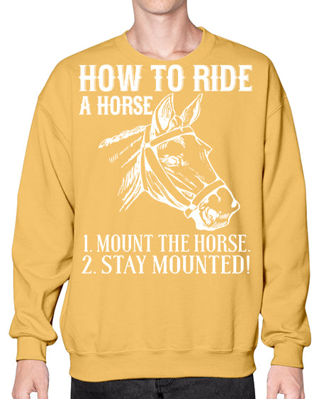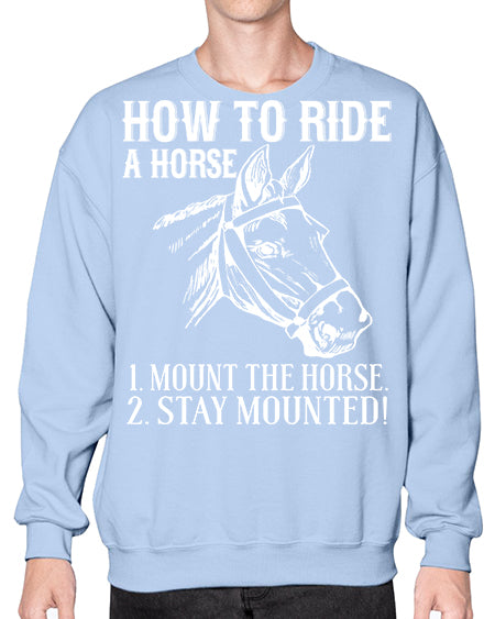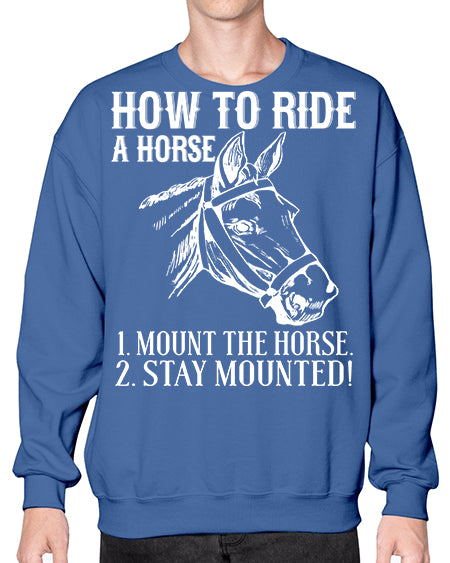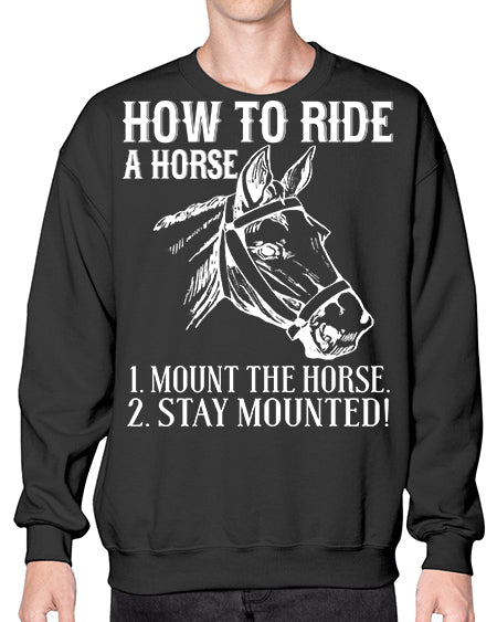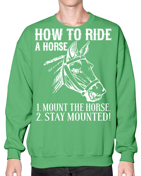 how to ride a horse just stay mounted - horse- Sweatshirt - Crew