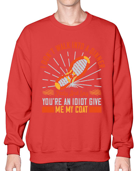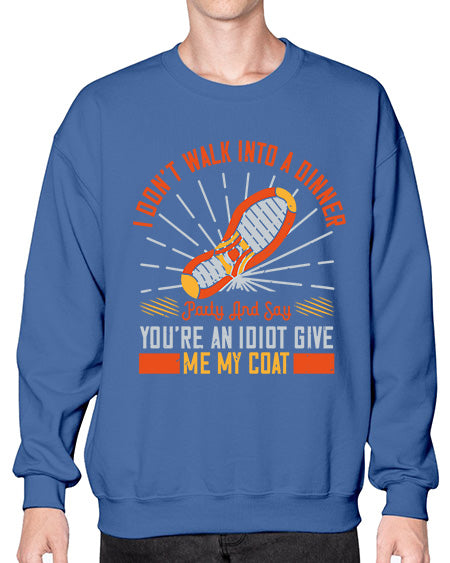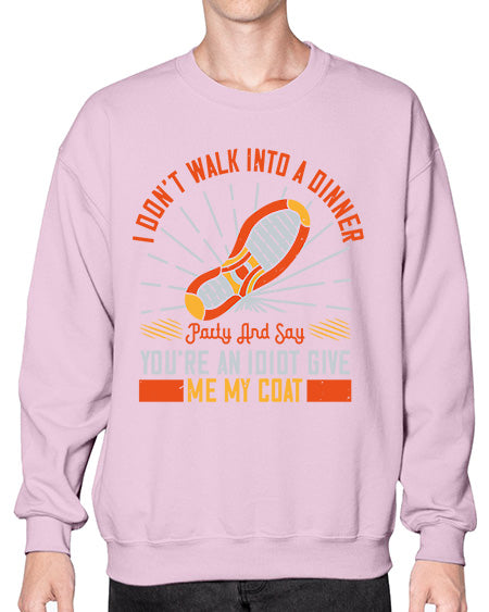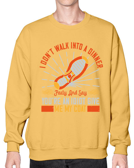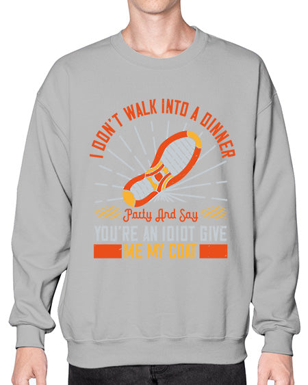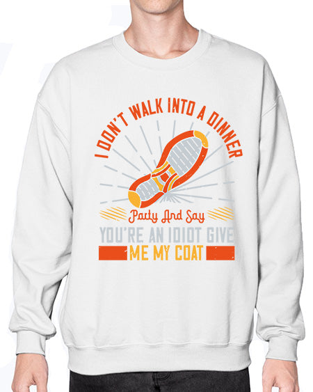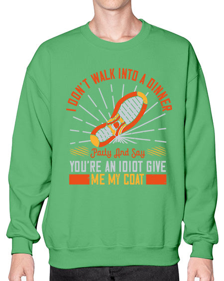 i dont walk into a dinner party and say youre an idiot give me my coat 285# - walking- Sweatshirt - Crew