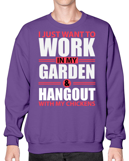 i just want to work in my garden and hang out with my chickens Style 4# - chicken - Crew Note: There is a 2 - 4 day creation time, which may delay shipping. Details- Preshrunk fleece knit