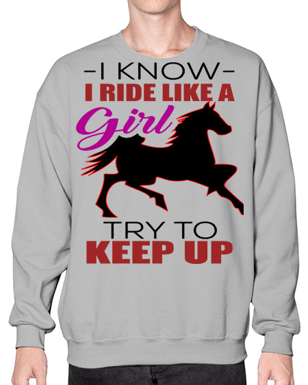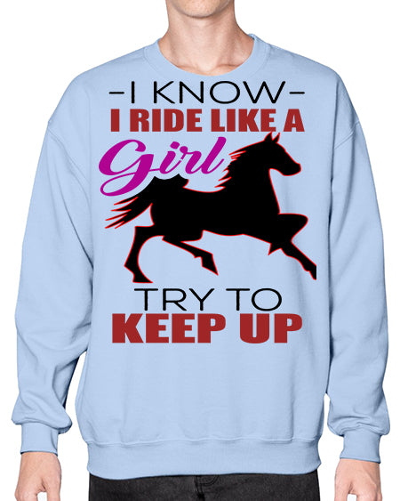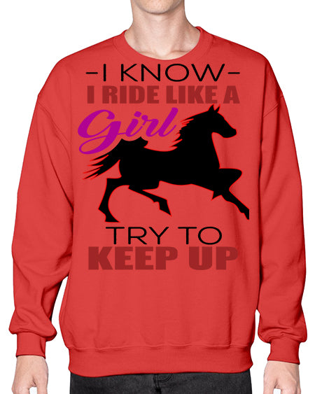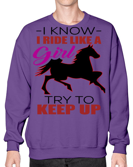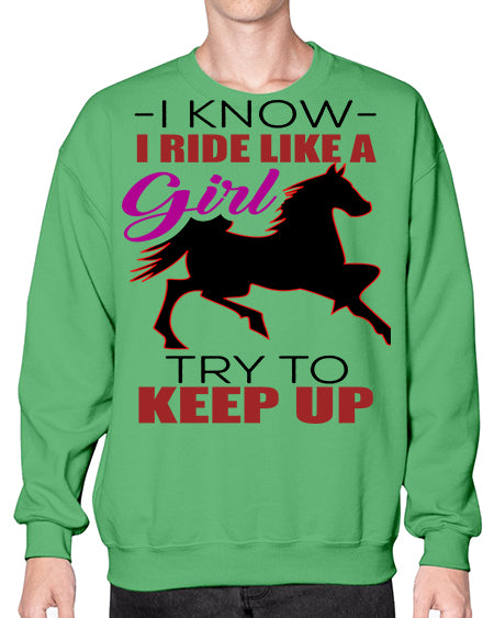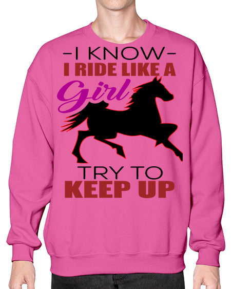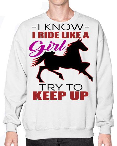 i kno i ride like a girl try to keep up - horse- Sweatshirt - Crew