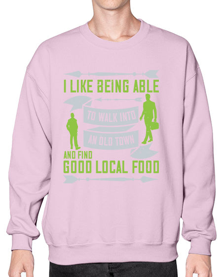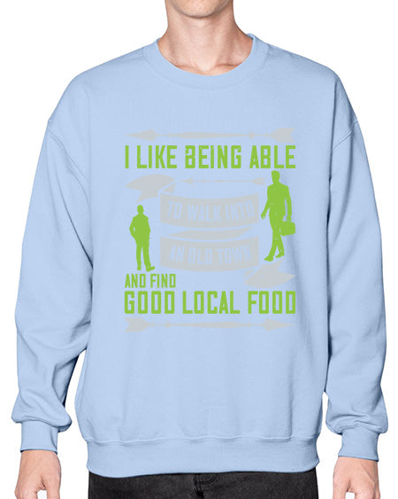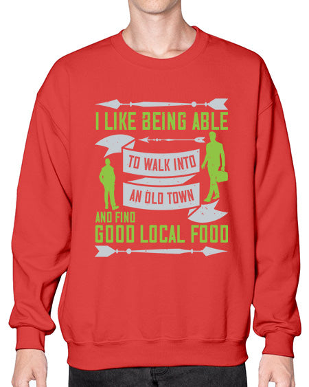 i like being able to walk into an old town and find good local food 291# - walking- Sweatshirt - Crew
