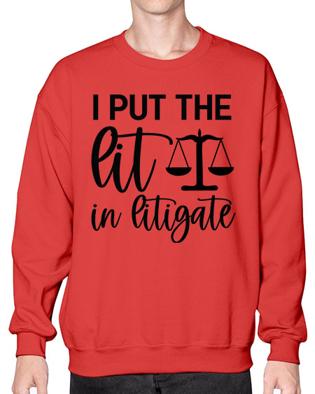 i put the lit in litigate 919# - lawyer - Crew Note: There is a 2 - 4 day creation time, which may delay shipping. Details- Preshrunk fleece knit