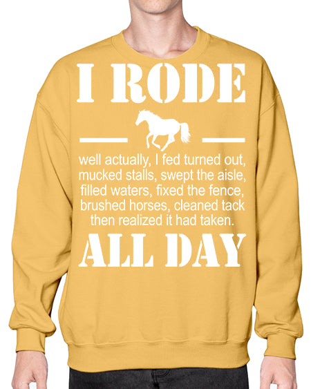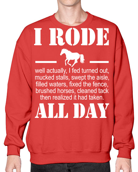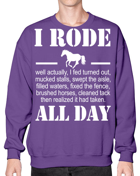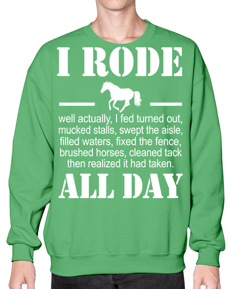 i rode my horse all day - horse - Crew Note: There is a 2 - 4 day creation time, which may delay shipping. Details- Preshrunk fleece knit