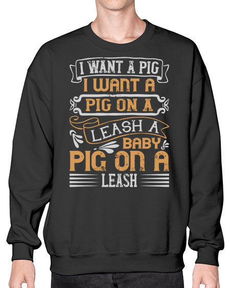 I want a pig I want a pig on a leash A baby pig on a leash Style 66# - pig- Sweatshirt - Crew