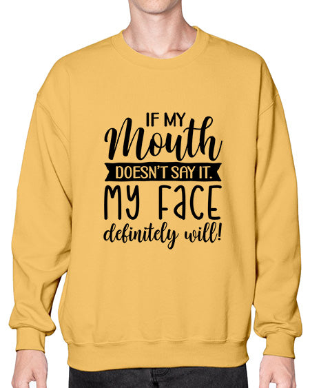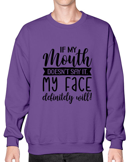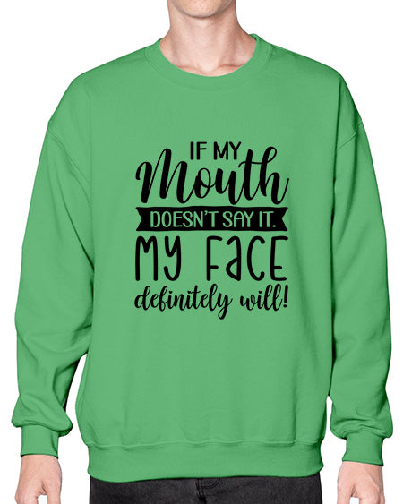 If my mouth doesnt say it my face definitely will 619# - funny- Sweatshirt - Crew