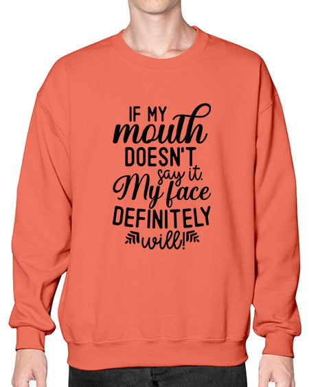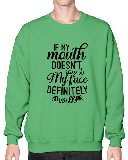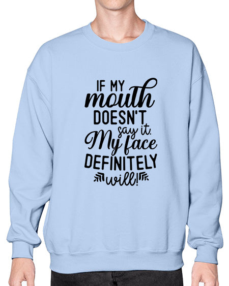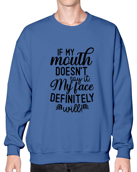 If my mouth doesnt say it my face definitely will 620# - funny- Sweatshirt - Crew