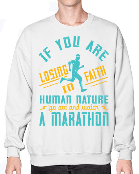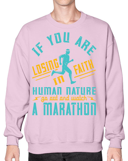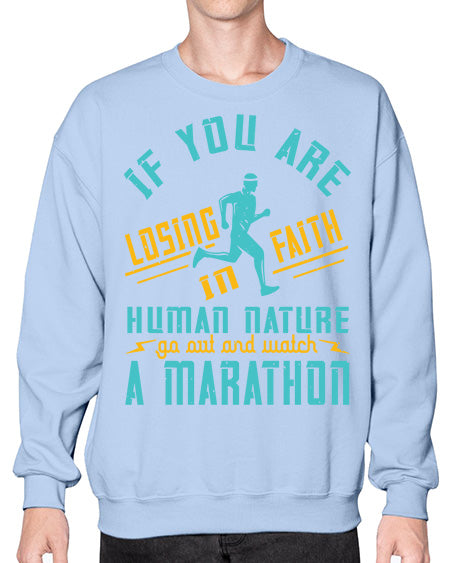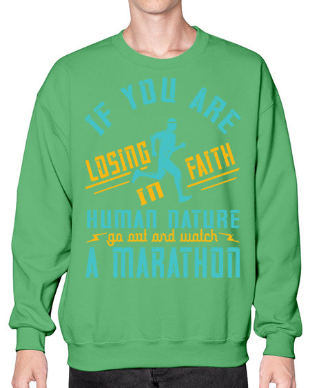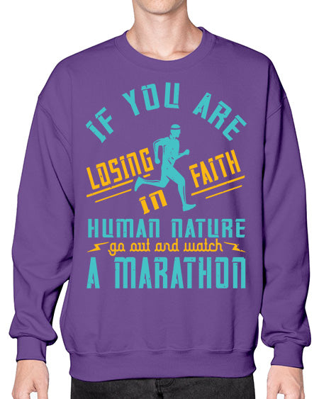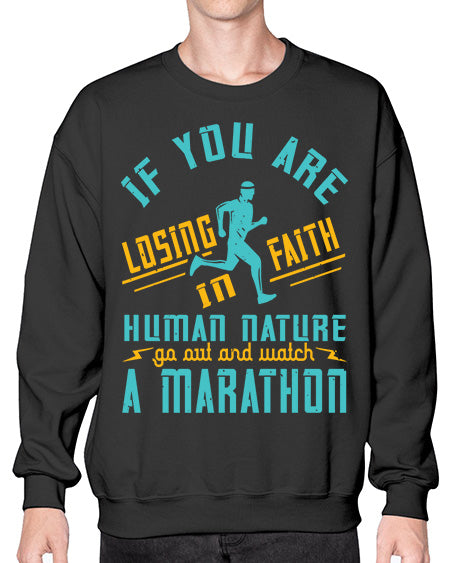 if you are losing faith in human nature go out and watch a marathon 322# - running- Sweatshirt - Crew