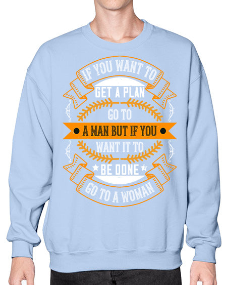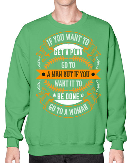 If you want to get a plan go to a man but if you want it to be done go to a woman Style 55# - womens day- Sweatshirt - Crew