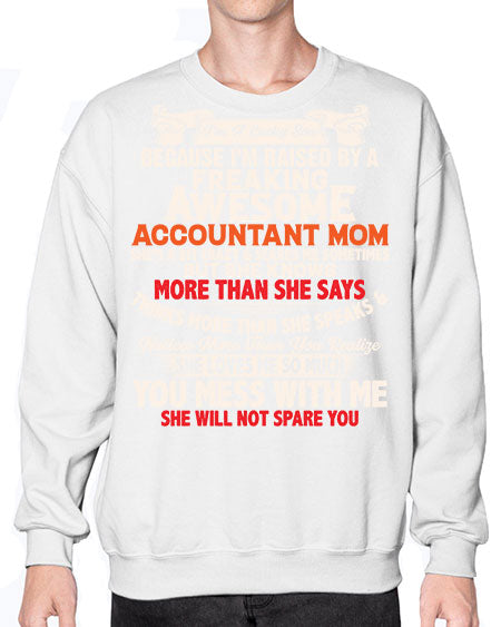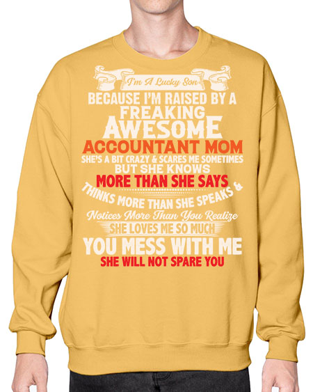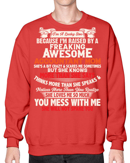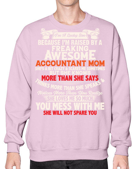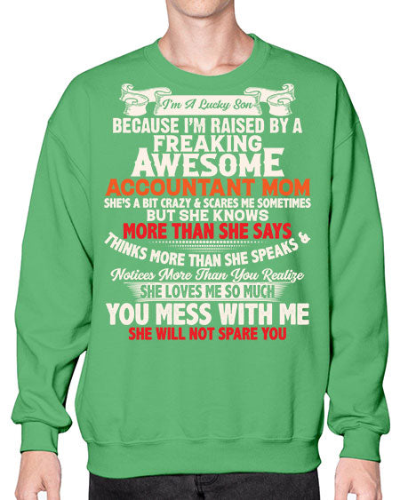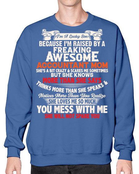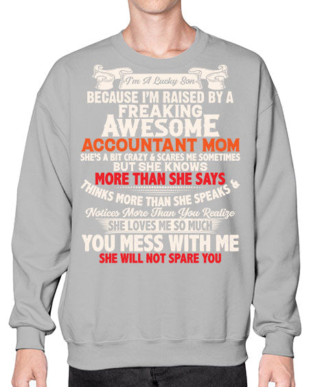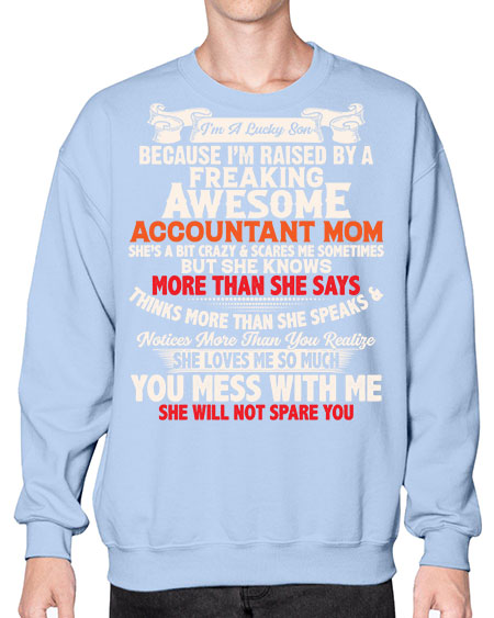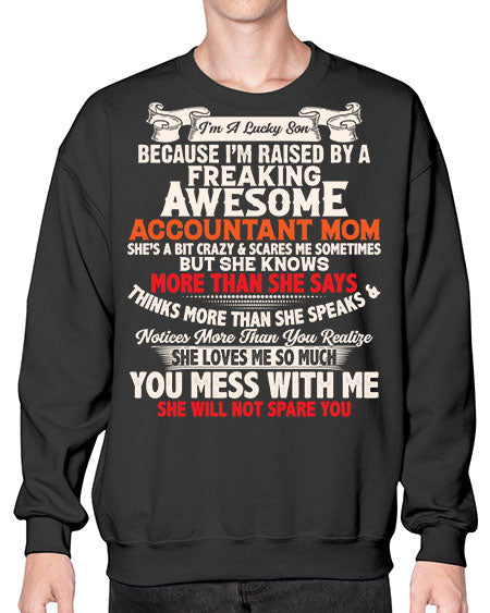 im a lucky son because im raised by a freaking awesome accountant mom converted955# - accountant - Crew Note: There is a 2 - 4 day creation time, which may delay shipping. Details- Preshrunk fleece knit