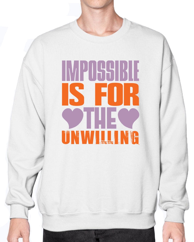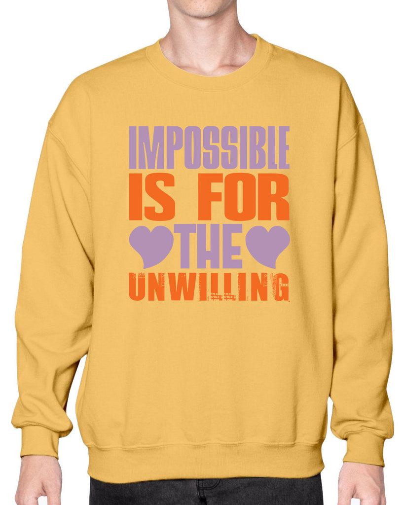 Impossible is for the unwilling - Cleaner - Crew Note: There is a 2 - 4 day creation time, which may delay shipping. Details- Preshrunk fleece knit
