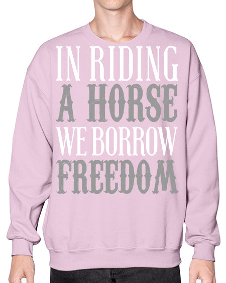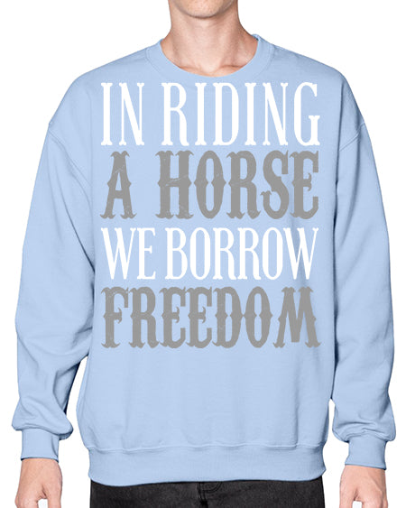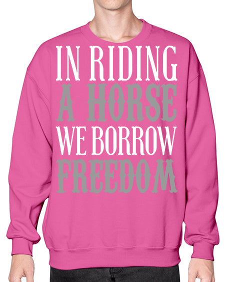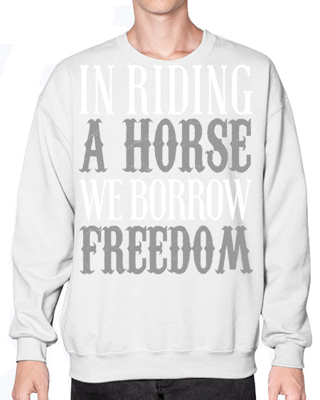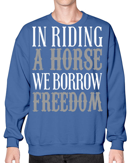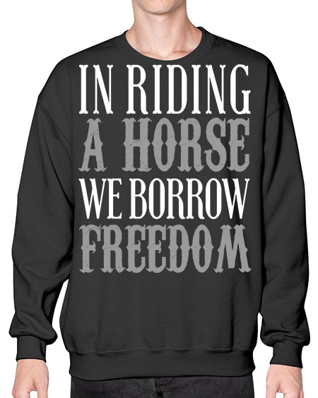 in riding a horse we borrow freedom - horse - Crew Note: There is a 2 - 4 day creation time, which may delay shipping. Details- Preshrunk fleece knit
