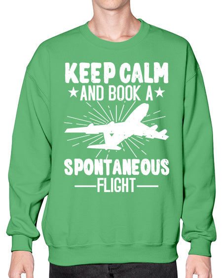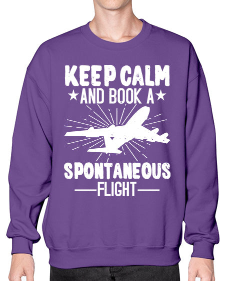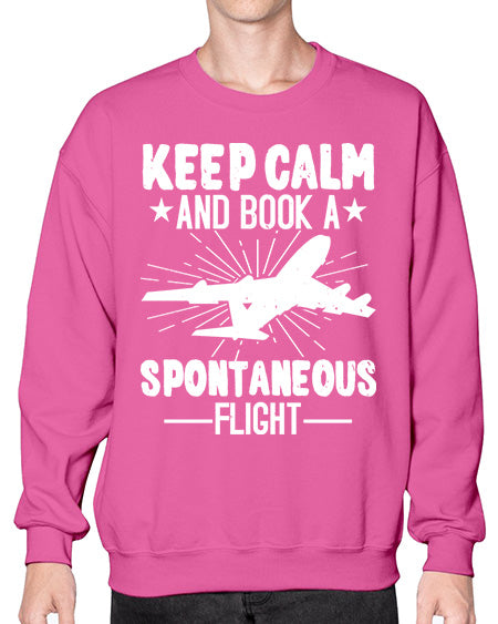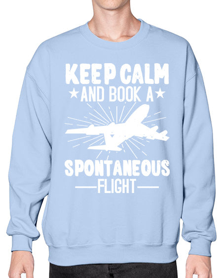 keep calm and book a spontaneous flight 30# - airplane - Crew Note: There is a 2 - 4 day creation time, which may delay shipping. Details- Preshrunk fleece knit