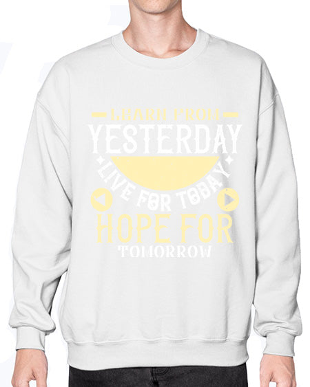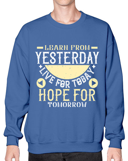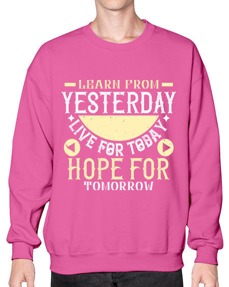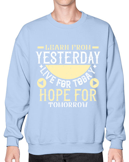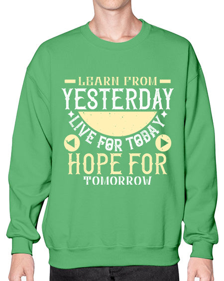 Learn from Yesterday Live for Today Hope for Tomorrow Style 22# - Sub - Crew Note: There is a 2 - 4 day creation time, which may delay shipping. Details- Preshrunk fleece knit