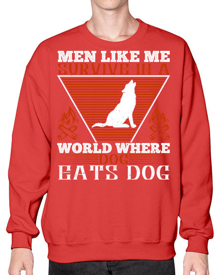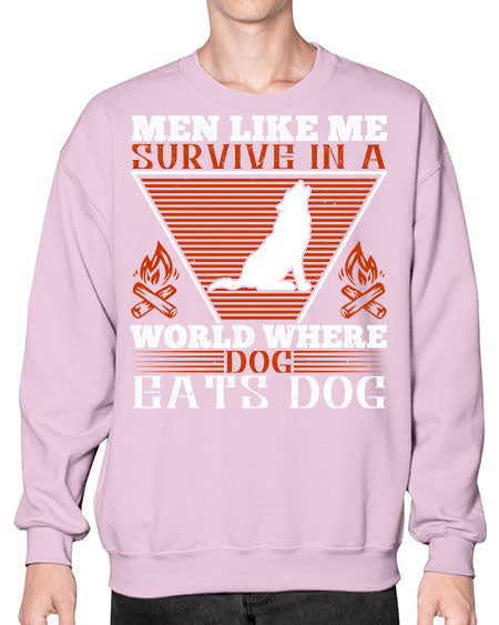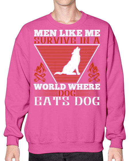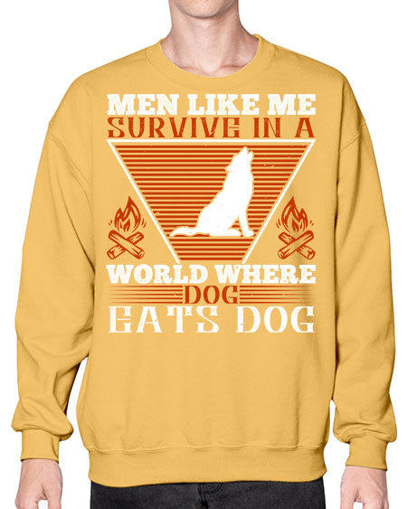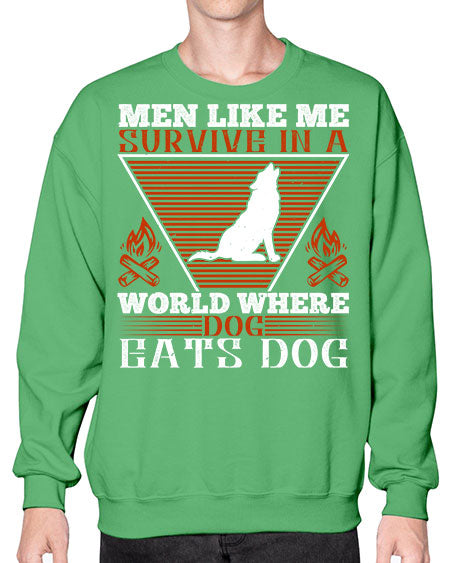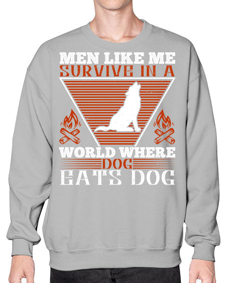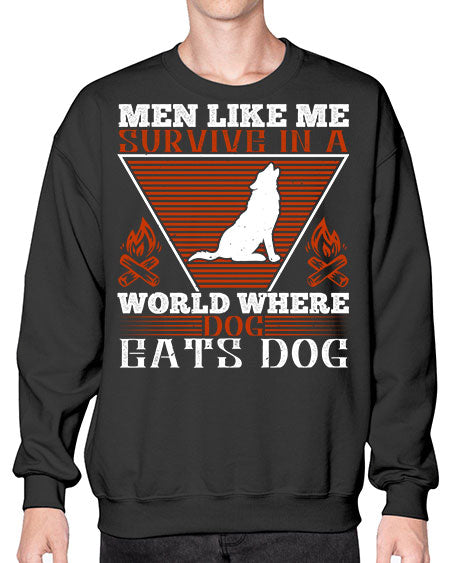 men like me survive in a world where dog eats dog 215# - dogs- Sweatshirt - Crew