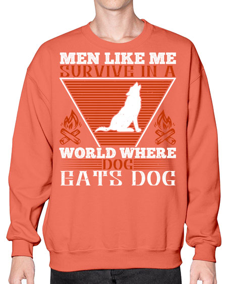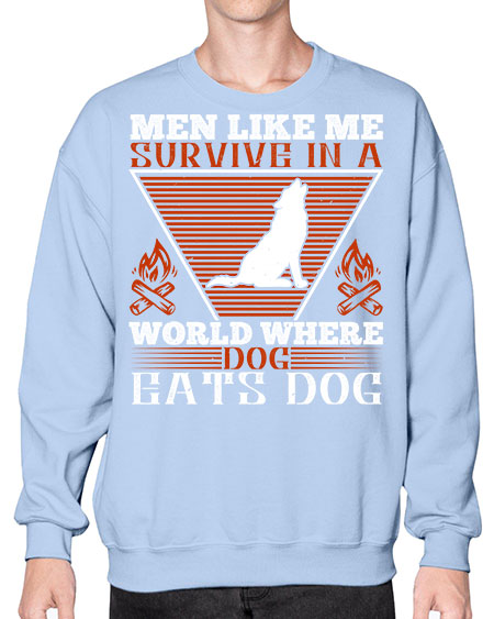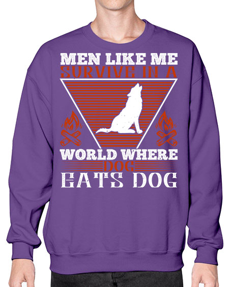 men like me survive in a world where dog eats dog 215# - dogs - Crew Note: There is a 2 - 4 day creation time, which may delay shipping. Details- Preshrunk fleece knit