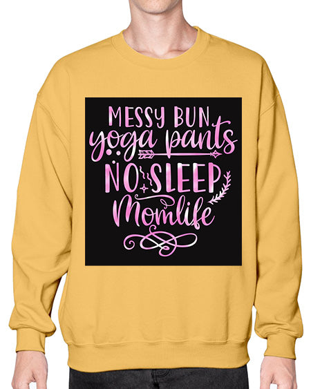 Messy bun yoga pants no sleep momlife 424# - yoga - Crew Note: There is a 2 - 4 day creation time, which may delay shipping. Details- Preshrunk fleece knit