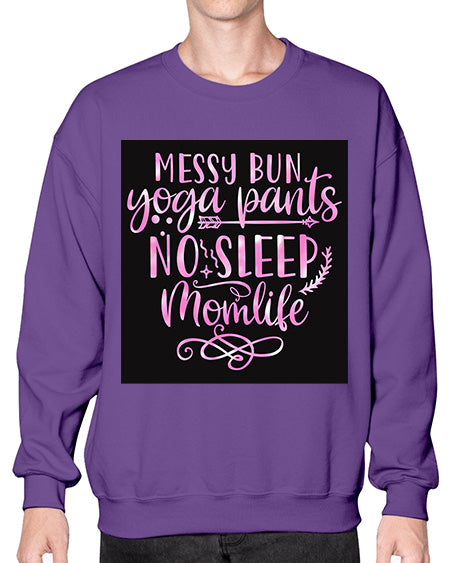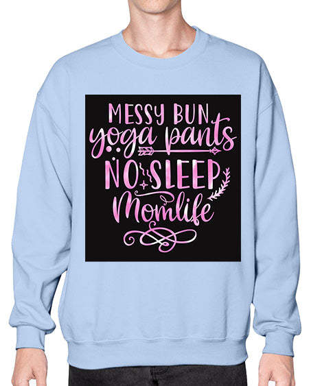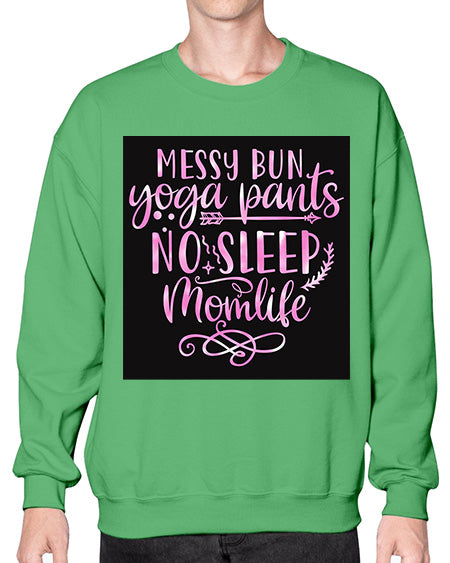 Messy bun yoga pants no sleep momlife 424# - yoga- Sweatshirt - Crew