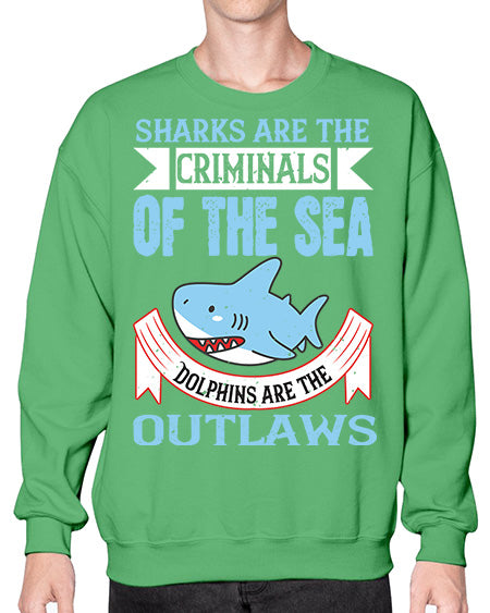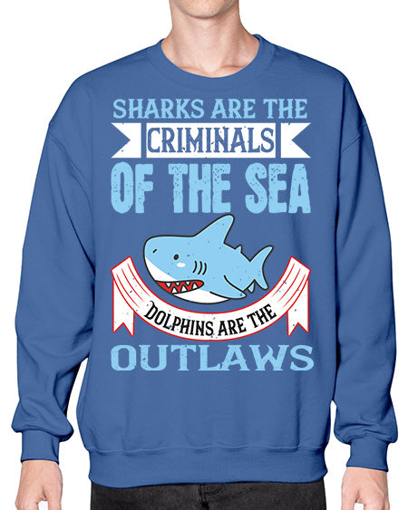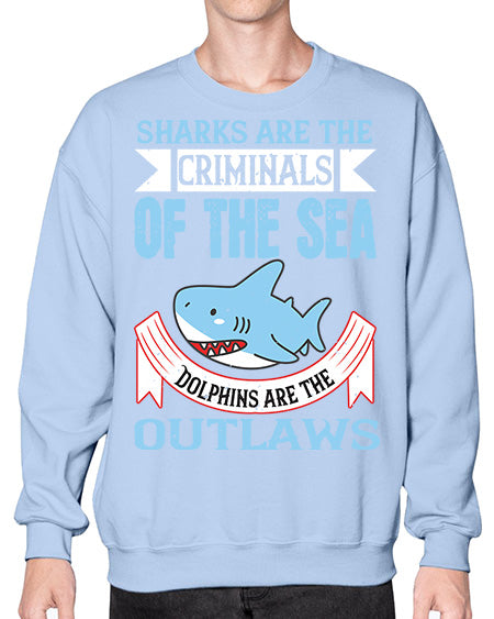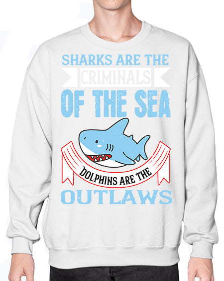 Sharks are the criminals of the sea Dolphins are the outlaws Style 32# - shark-fish- Sweatshirt - Crew