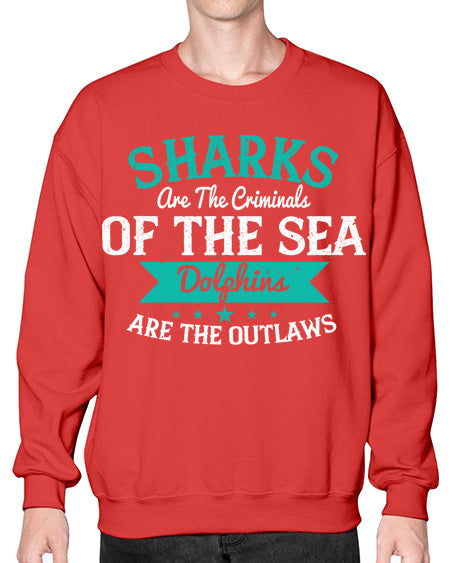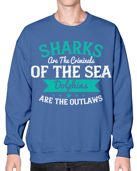 Sharks are the criminals of the sea Dolphins are the outlaws Style 34# - shark-fish- Sweatshirt - Crew