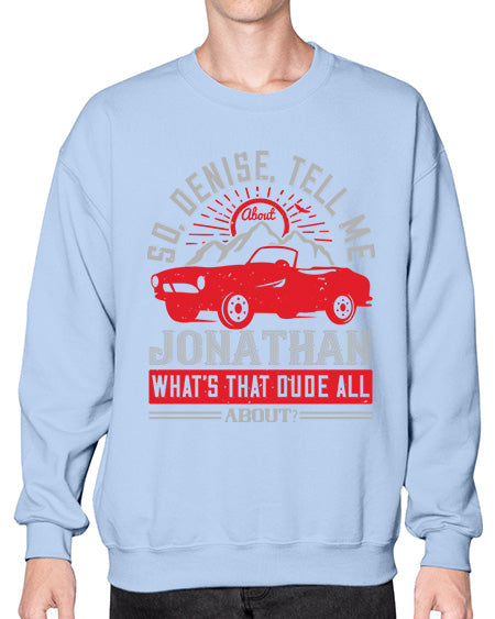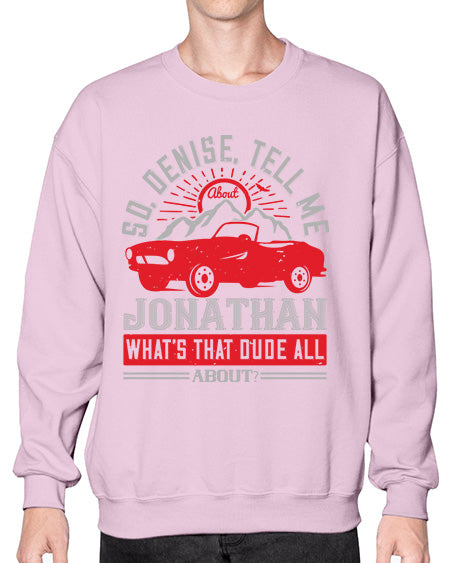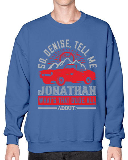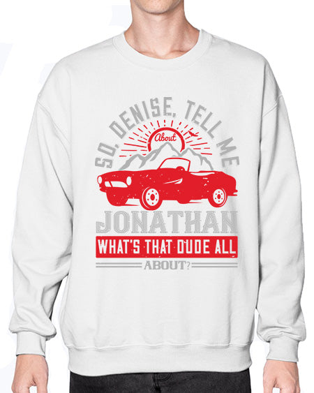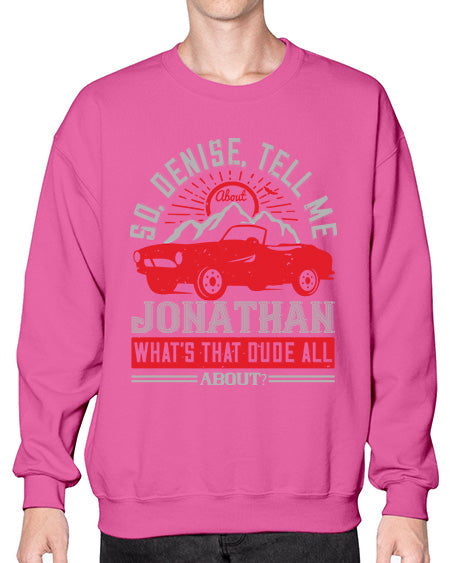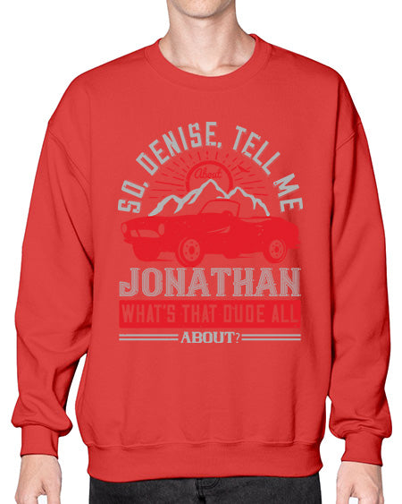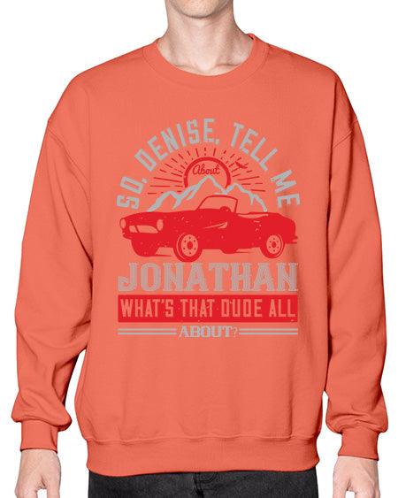 So Denise tell me about Jonathan Whats that dude all about 28# - hot rod- Sweatshirt - Crew
