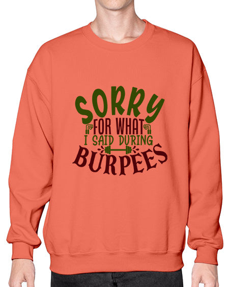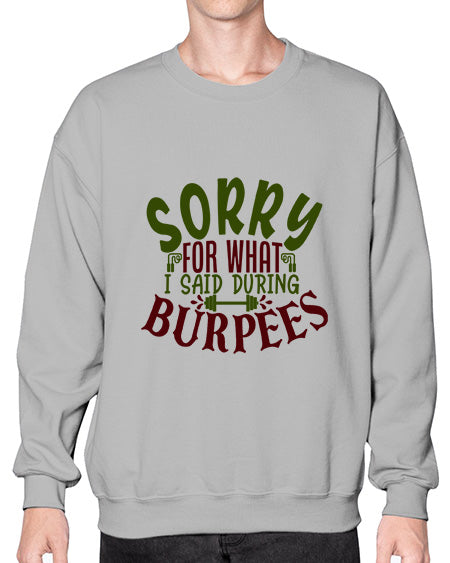 sorry for what i said during burpees 72# - gym - Crew Note: There is a 2 - 4 day creation time, which may delay shipping. Details- Preshrunk fleece knit