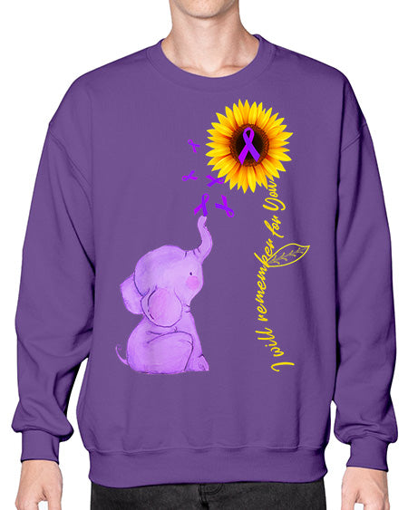 Sunflower Alzheimer Awareness shirt I Will Remember For You 215# - alzheimers- Sweatshirt - Crew