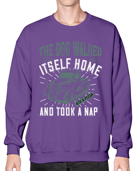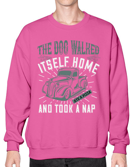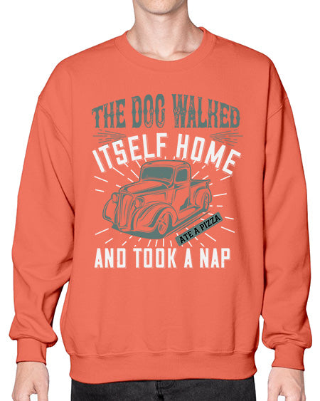 The dog walked itself home ate a pizza and took a nap 27# - hot rod- Sweatshirt - Crew
