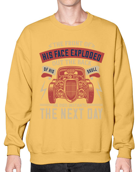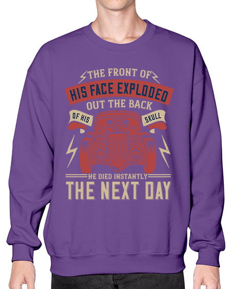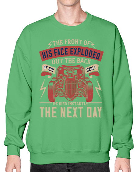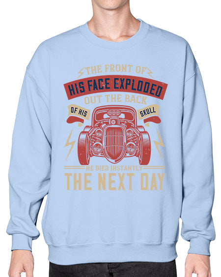 The front of his face exploded out the back of his skull He died instantly the next day 111# - hot rod- Sweatshirt - Crew