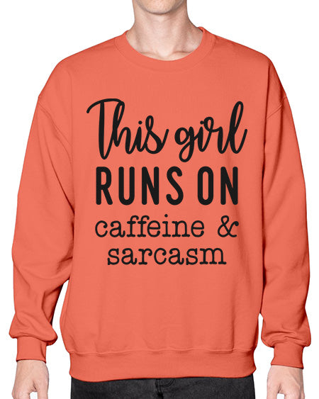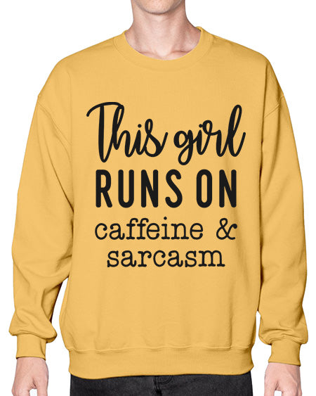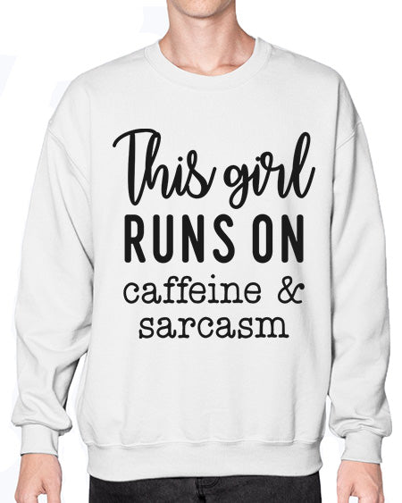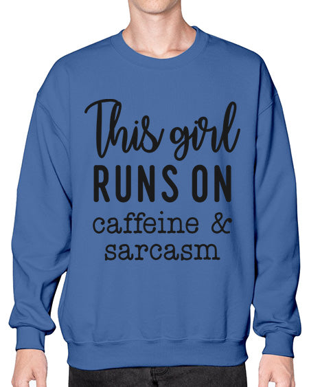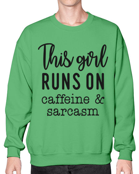 this girl runs on caffeine and sarcasm 1164# - funny- Sweatshirt - Crew