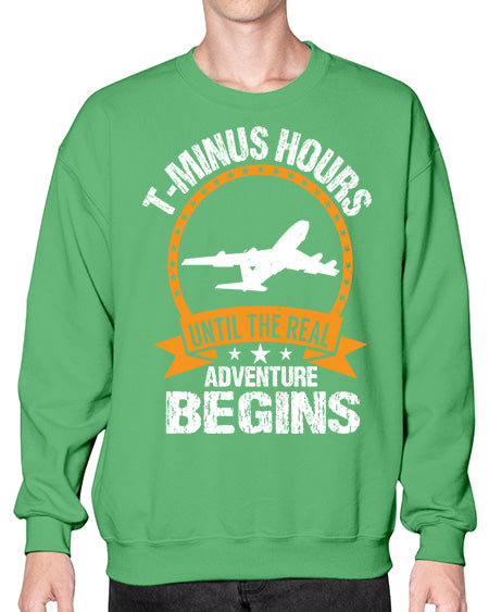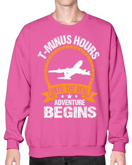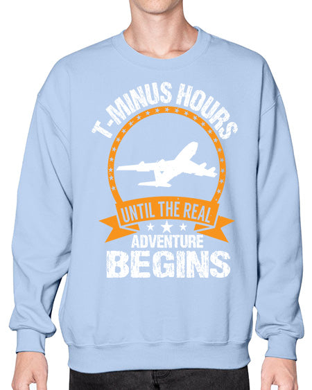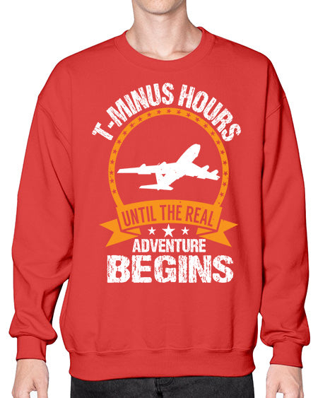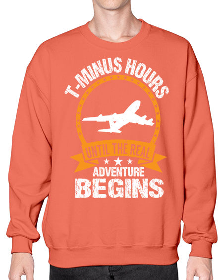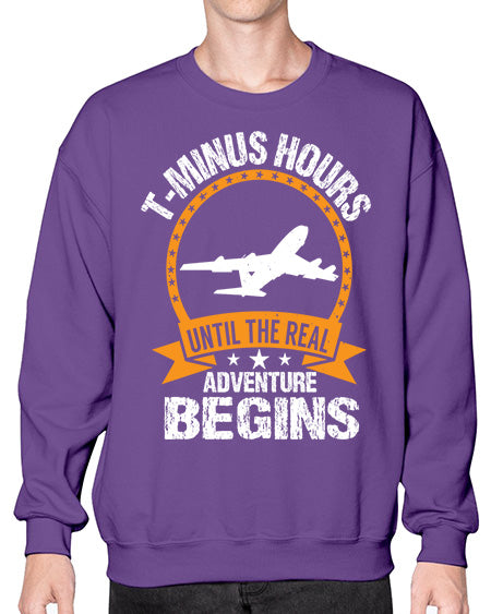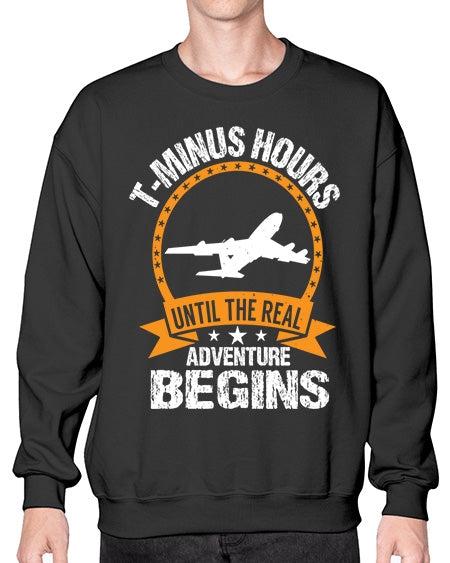 tminus hours until the adventure begins 45# - airplane- Sweatshirt - Crew