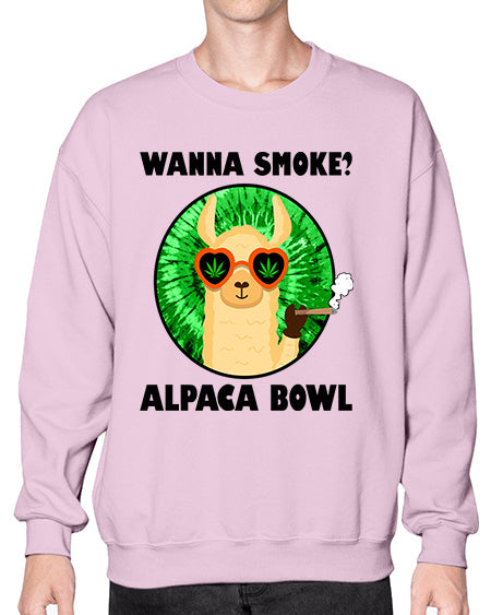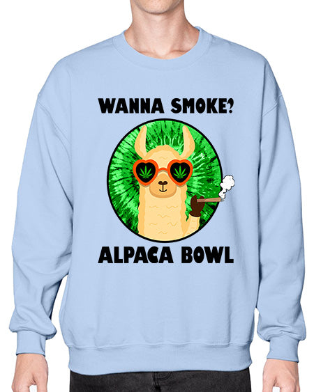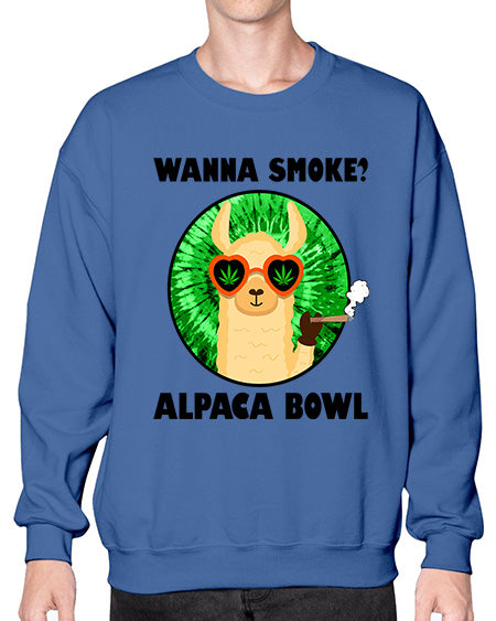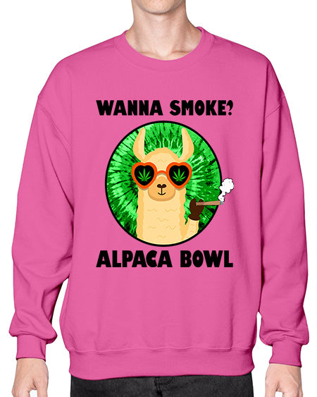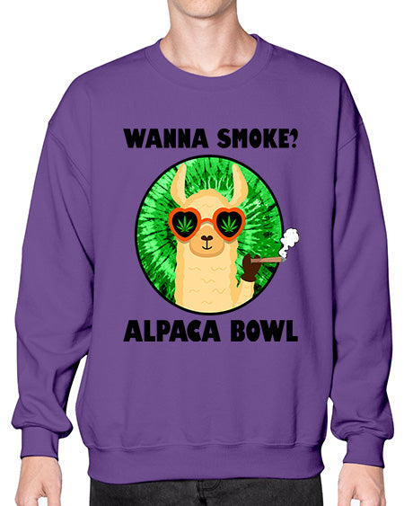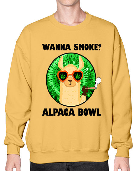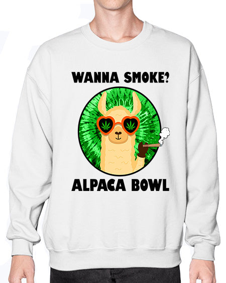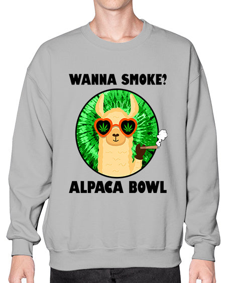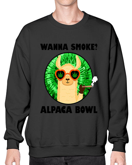 Wanna Smoke Alpaca Bowl 1203# - graphic - Crew Note: There is a 2 - 4 day creation time, which may delay shipping. Details- Preshrunk fleece knit