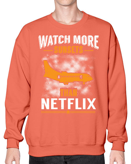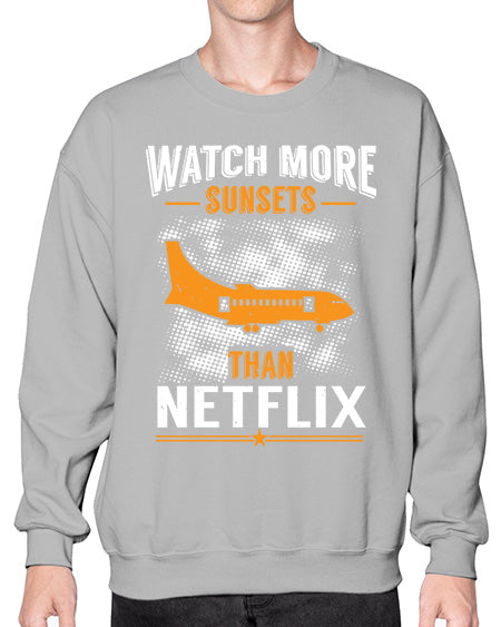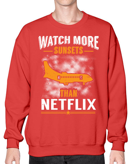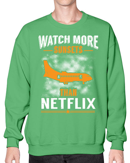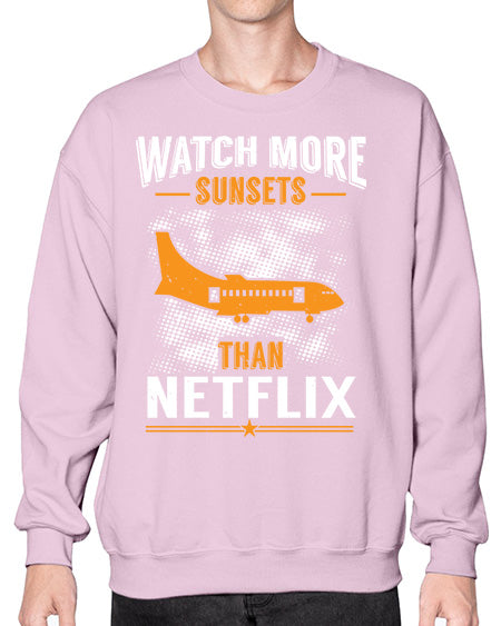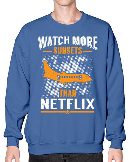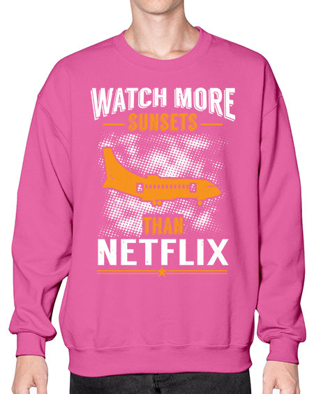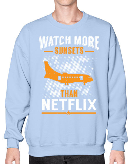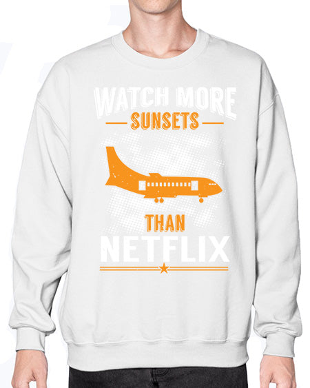 watch more sunsets then netflix 48# - airplane- Sweatshirt - Crew