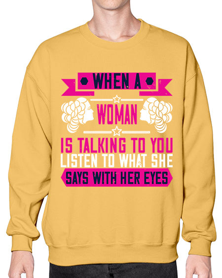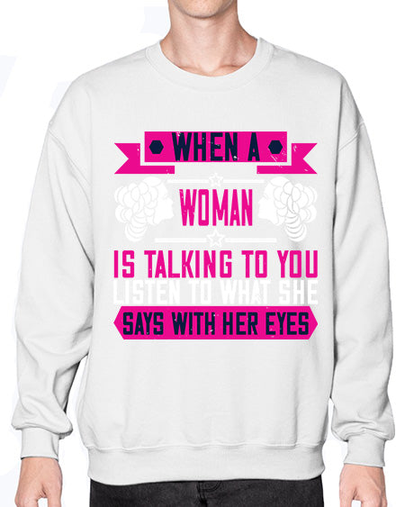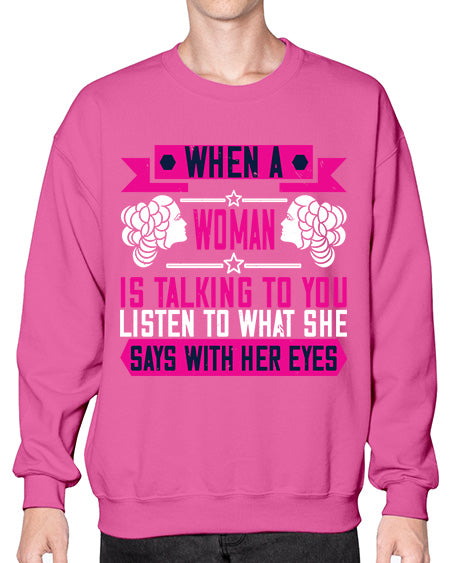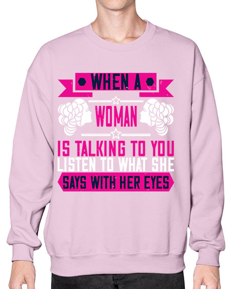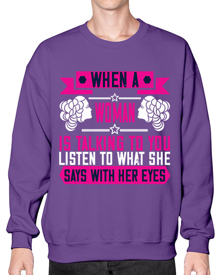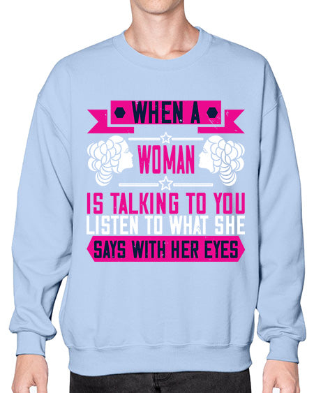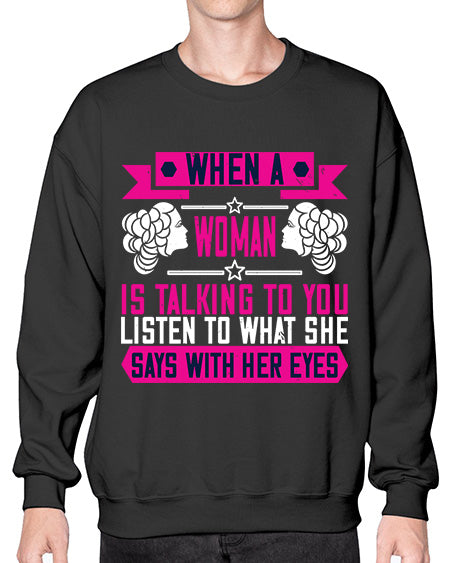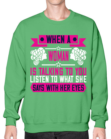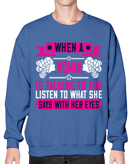 When a woman is talking to you listen to what she says with her eyes Style 21# - womens day- Sweatshirt - Crew