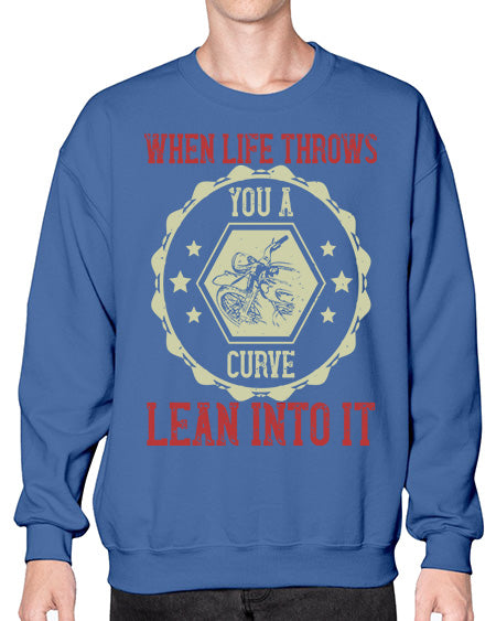 When life throws you a curve lean into it 78# - motorcycle- Sweatshirt - Crew