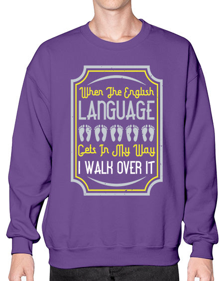 when the english language gets in my way i walk over it 603# - walking- Sweatshirt - Crew