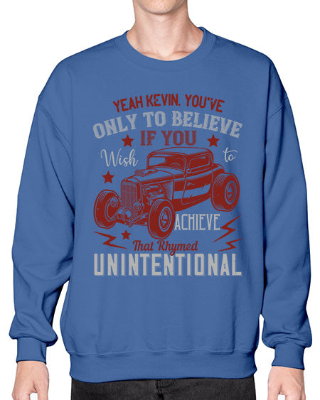 Yeah Kevin Youve only to believe if you wish to achieve That rhymed Unintentional 16# - hot rod- Sweatshirt - Crew