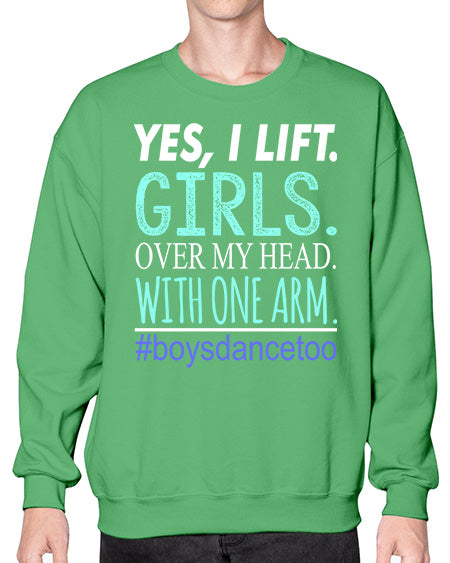 Yes i lift girls over my head with one arm 220# - dance2- Sweatshirt - Crew
