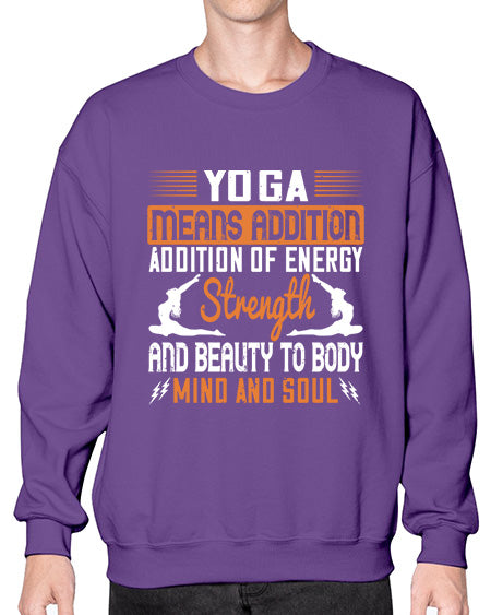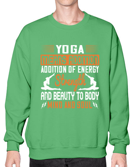 yoga means addition addition of energy strength and beauty to body mind and soul 630# - yoga- Sweatshirt - Crew