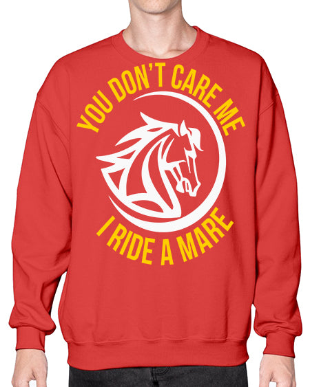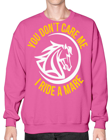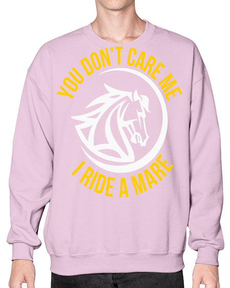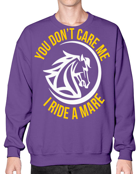 you don’t care me i ride a mare Style 1# - horse - Crew Note: There is a 2 - 4 day creation time, which may delay shipping. Details- Preshrunk fleece knit