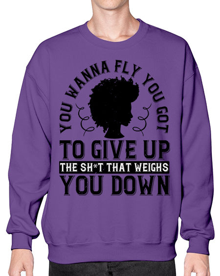 You wanna fly you got to give up the sht that weighs you down Style 45# - black afro- Sweatshirt - Crew