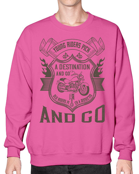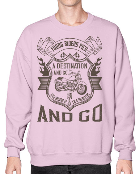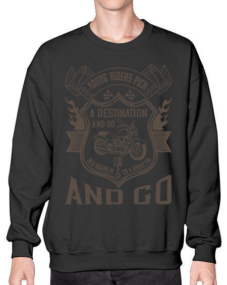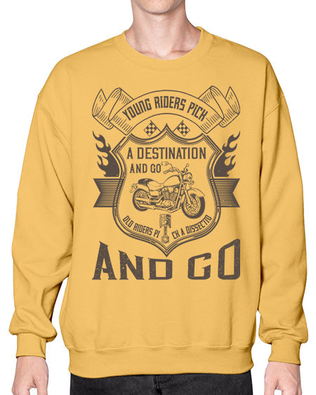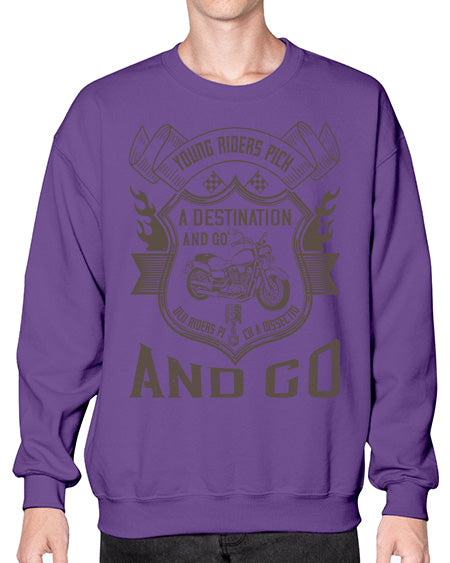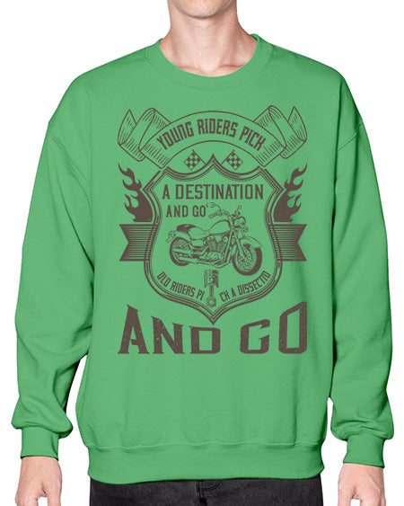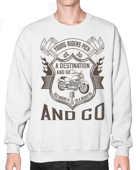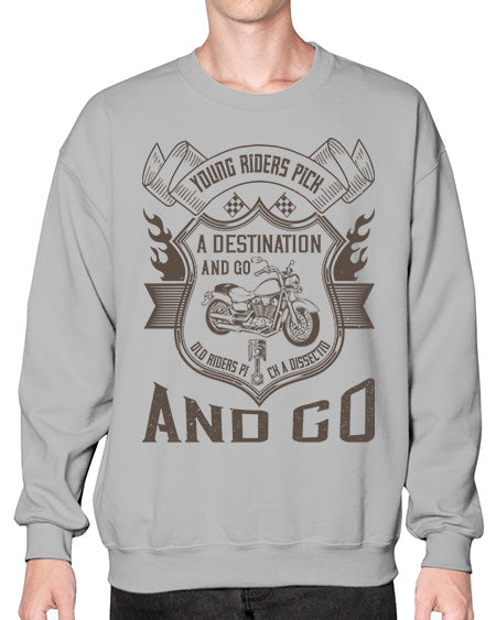 Young riders pick a destination and go old riders pick a dissection and go 84# - motorcycle- Sweatshirt - Crew
