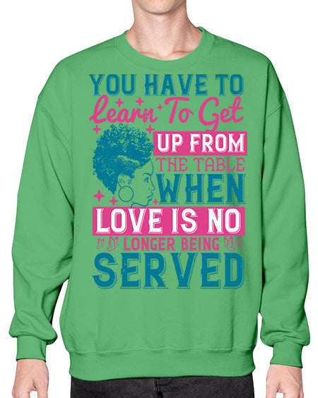 Youve got to learn to leave the table when loves no longer being served Style 41# - black afro- Sweatshirt - Crew