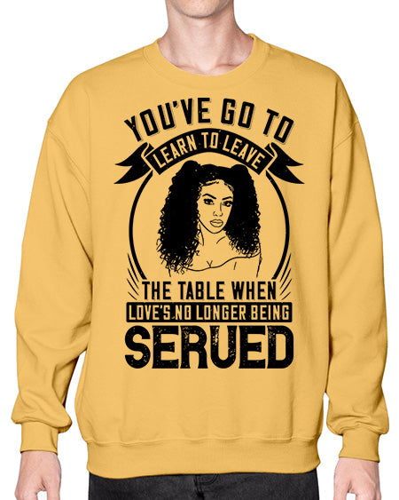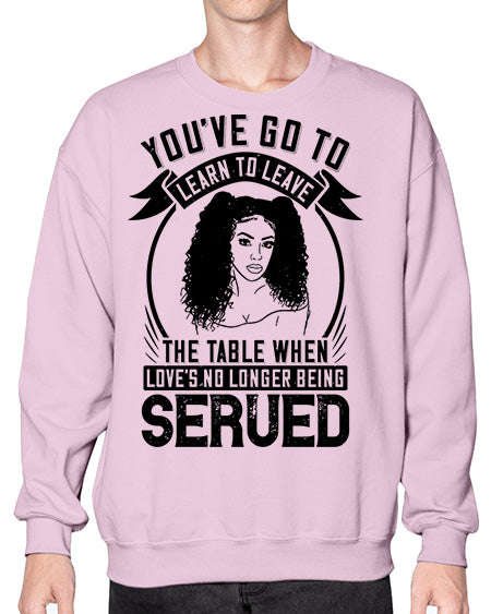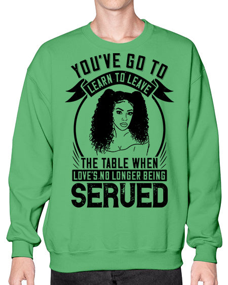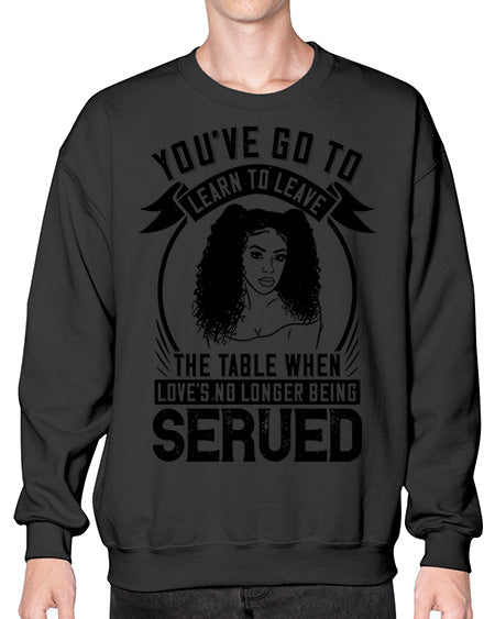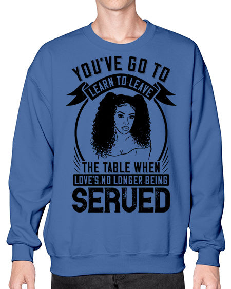 Youve got to learn to leave the table when loves no longer being served Style 5# - black afro- Sweatshirt - Crew