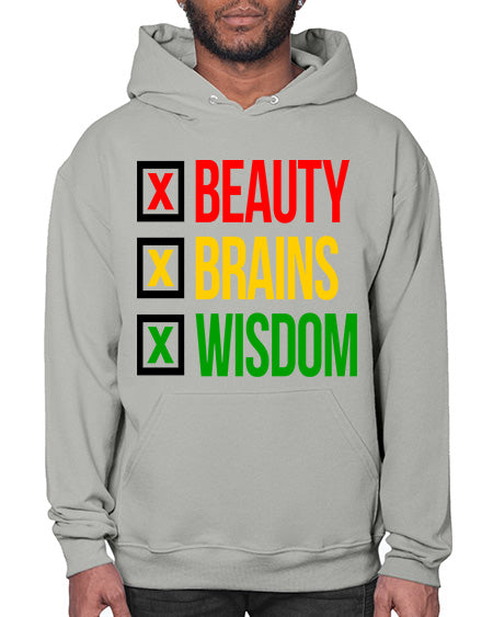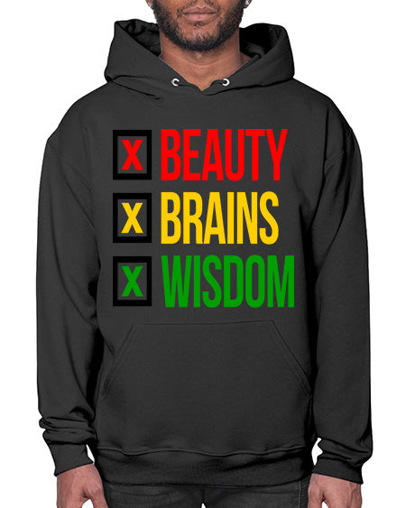beauty brains wisdom 262# - black words and phrases- Hoodie